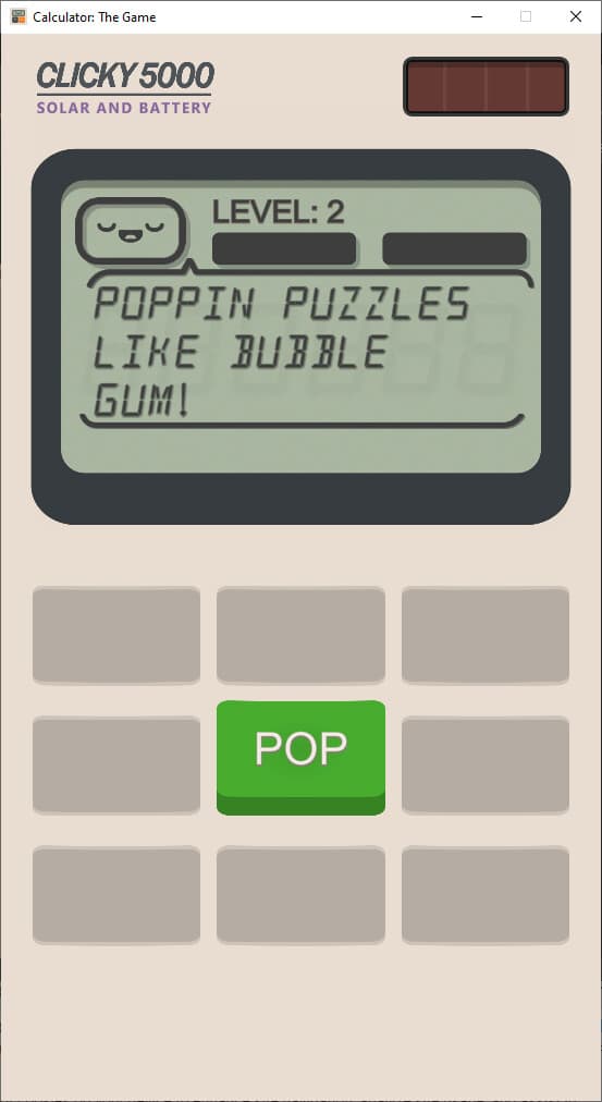 Calculator: The Game — это головоломка, в которой интерфейс цифрового калькулятора служит основным игровым полем. Главная задача — преобразовать исходное число в заданное за ограниченное число ходов. Геймеры добиваются этого при помощи набора функций, включающего стандартные арифметические операции, а также более необычные манипуляции, например, стирание отдельных цифр или реверс всей числовой последовательности.