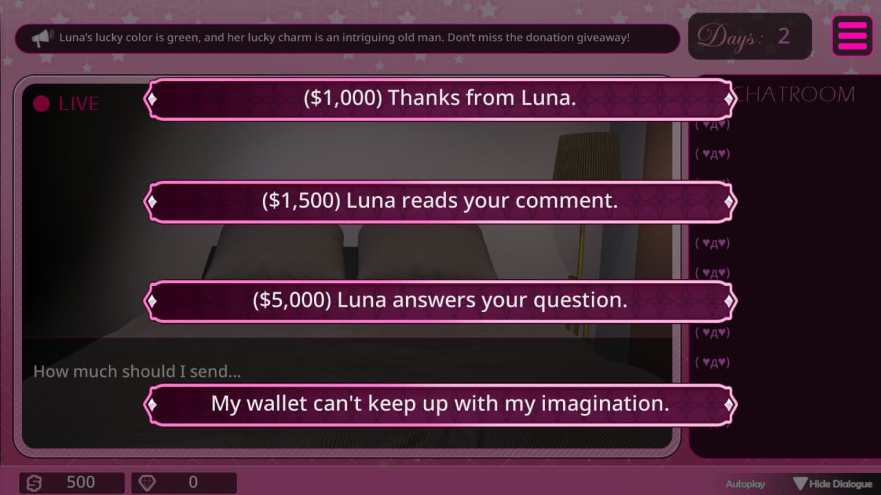 Игровой процесс основан на исследовании сюжета со сценарием на 100000 слов и более чем 20 анимированными CG-роликами. Эти эпизоды демонстрируют создание материалов для взрослых и публичный эксгибиционизм. Каждая из четырех женских персонажей имеет две разные концовки, а финальный исход зависит от поступков геймера и их влияния на совесть протагониста. В проекте предусмотрена функция переключения ракурсов камеры в 3D-анимациях для обзора с разных точек.