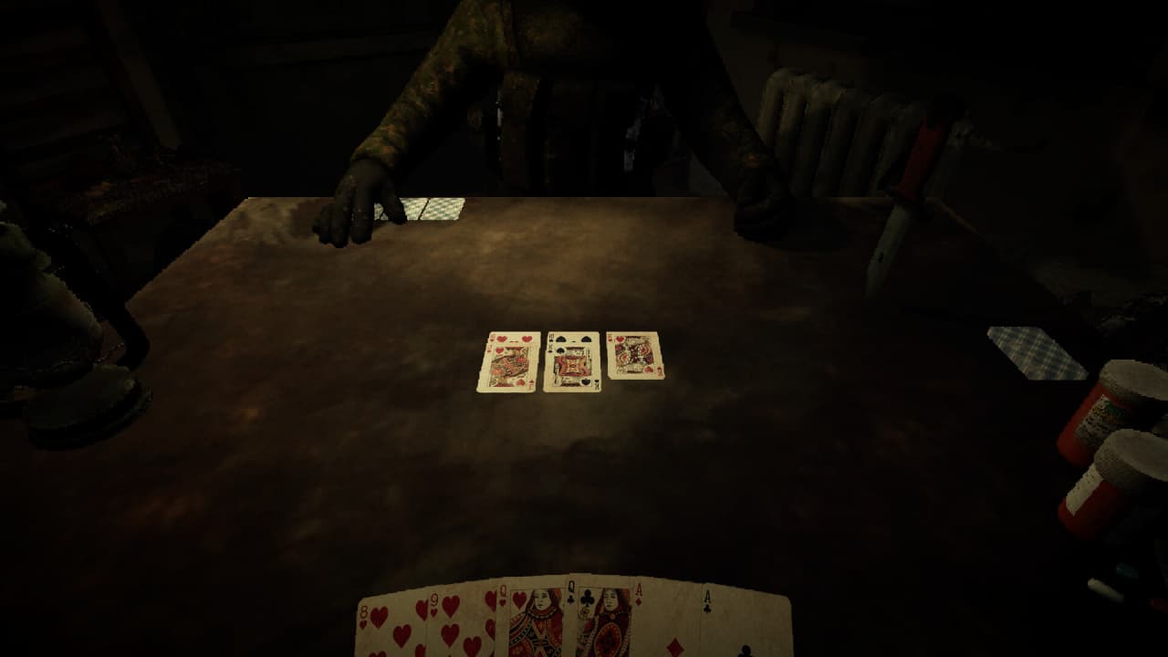 Соперники должны постоянно добирать из колоды, чтобы поддерживать на руках 6 карт, пока она не закончится. Встроенная система очков отслеживает успехи для глобальной таблицы рекордов. Этот психологический хоррор является изображением войны и ее последствий для психики, основанным на сведениях о реальных событиях. Каждая сессия бросает новые вызовы через случайные механики, которые требуют корректировки выбранной стратегии. Азартная составляющая здесь не про валюту, а про временную отсрочку от нарастающего ужаса. Задача — одержать верх в карточной партии до того, как внешний конфликт достигнет развязки.