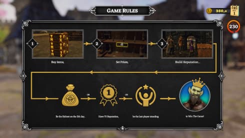 Игровой процесс требует эффективного тайм-менеджмента, поскольку все приготовления необходимо завершить до открытия торговой точки. На этом этапе можно также крутить Колесо Удачи для получения рискованных преимуществ, способных повлиять на текущее положение дел. Как только клиенты начинают прибывать, нужно оперативно проводить сделки и обслуживать кассу для максимизации прибыли. По завершении каждого дня в дело вступают Карты Ведьм, вносящие дополнительный элемент стратегии в продолжающуюся рыночную войну.
