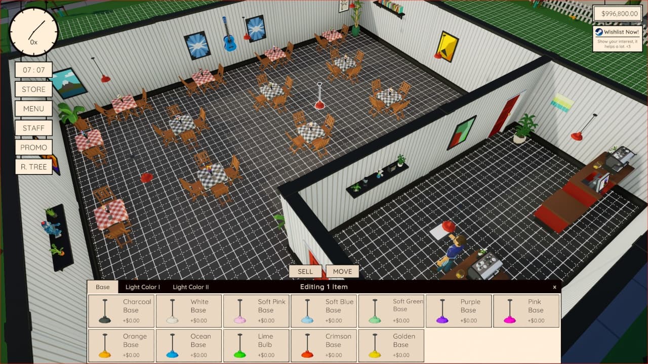 Cafe Manager ставит перед игроком задачу основать небольшое дело и руководить его развитием с нуля. Процесс начинается с проектирования пространства, включая расстановку стен и выбор элементов интерьера вроде скатертей. Такая кастомизация позволяет создать уникальное заведение, соответствующее собственному видению. Центральная цель — превратить начальное предприятие в популярную локацию, постепенно выстраивая репутацию, привлекающую постоянный поток гостей и генерирующую стабильный заработок. Весь процесс контролируется с видом сверху.