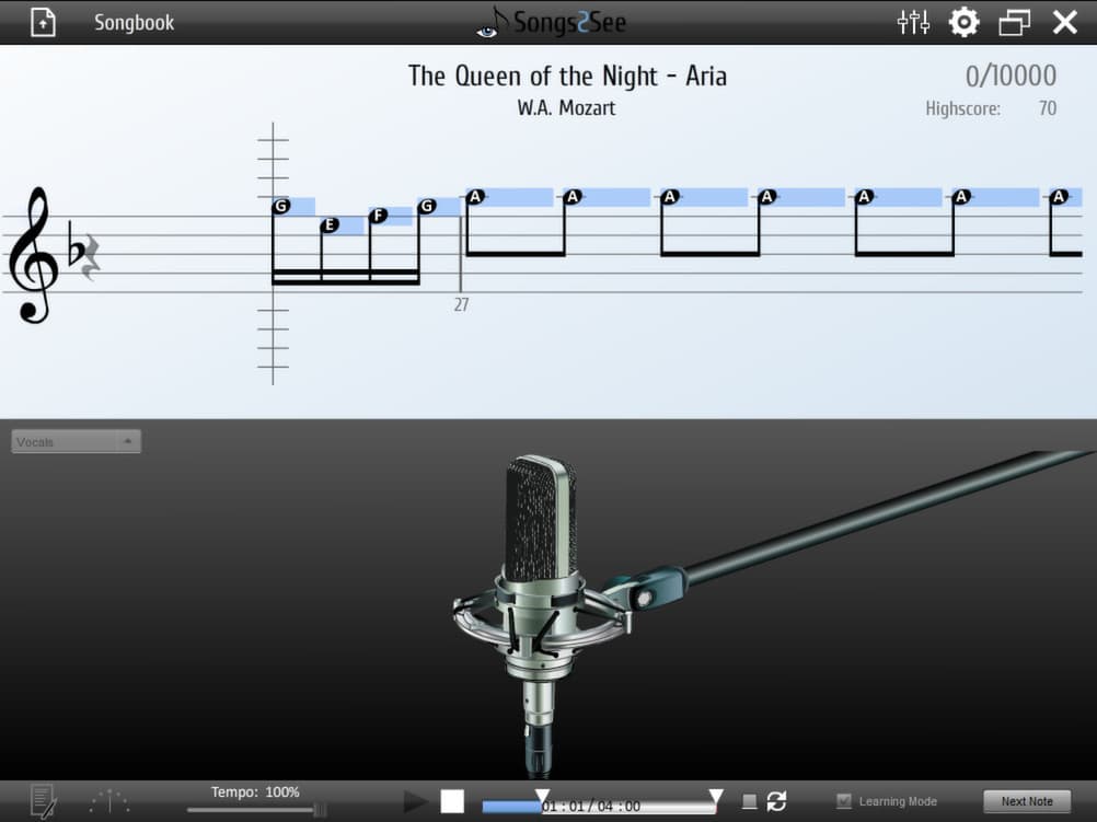 Songs2See — музыкальный тренажер, предлагающий уникальную возможность превращать личную фонотеку в интерактивные уроки. Основой проекта служит встроенный редактор, способный анализировать аудиофайлы форматов MP3 или WAV для автоматической транскрипции основной мелодии. Таким образом, любой желающий может создавать персональные учебные материалы из любимых композиций. Для занятий не требуются специальные контроллеры — достаточно подключить к компьютеру обычный микрофон и взять в руки настоящий инструмент, будь то гитара, фортепиано или саксофон. Программа улавливает исполняемые ноты и сопоставляет их с партитурой, обеспечивая мгновенную обратную связь.