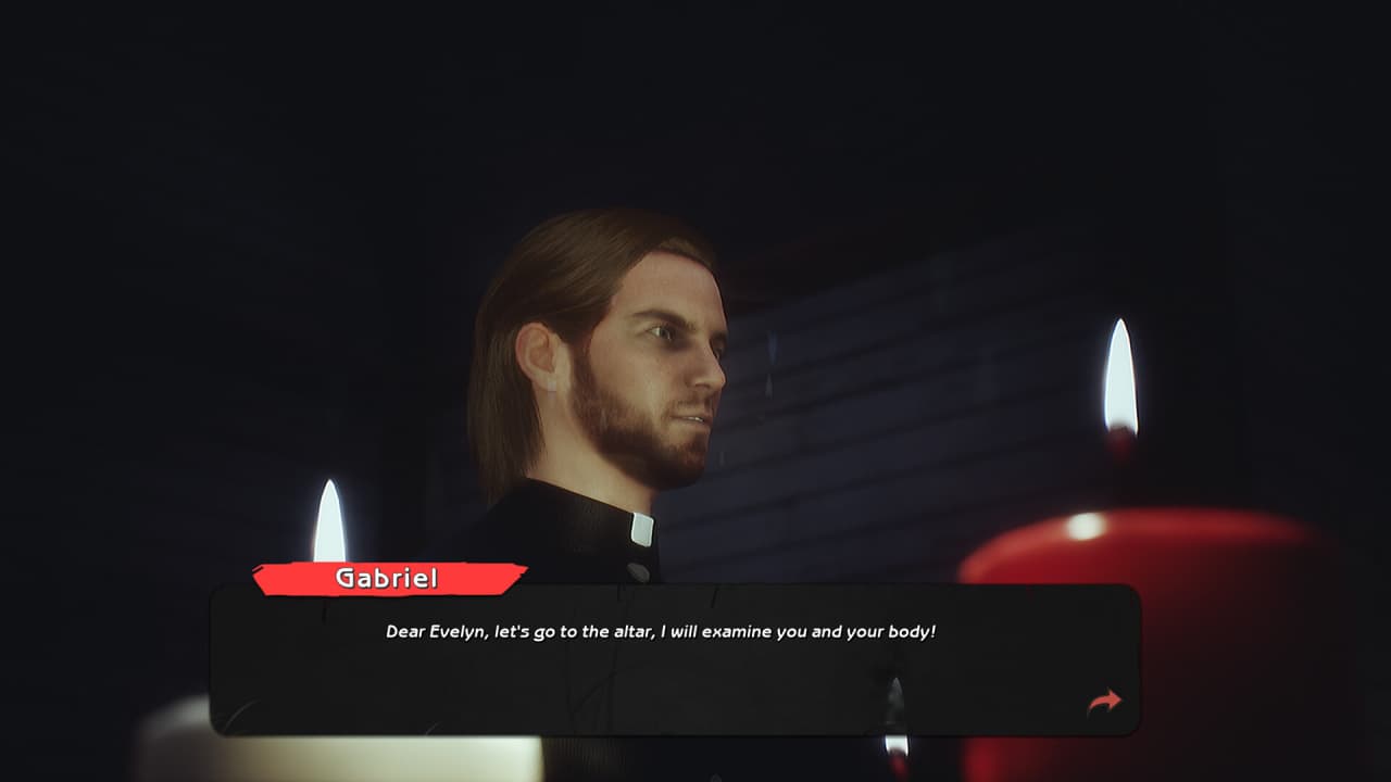 Процесс изгнания темных сил из грешницы представляет собой последовательную цепочку интерактивных сцен. Взаимодействие с Эвелин начинается с разговора, который плавно перетекает в ее полное разоблачение. Геймплей Banisher Of Lust предлагает детально изучить каждый изгиб ее тела, прикасаясь к самым сокровенным местам. Кульминацией ритуала очищения становится акт глубокого проникновения, после которого Гавриил предлагает своей новой послушнице посвятить себя служению в качестве монахини. Весь процесс реализован в формате кликера, где каждое действие приближает к финальной сцене.