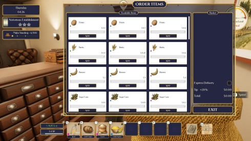 Основой всего дела является процесс дистилляции спиртных напитков из разнообразного сырья. Стратегическая глубина достигается за счет выбора между быстрой прибылью от оптовых сделок с мафией и долгосрочным доходом от розничной продажи напитков клиентам. Успешное руководство предприятием в Speakeasy Simulator подразумевает контроль над всеми аспектами его деятельности, требуя от управляющего: