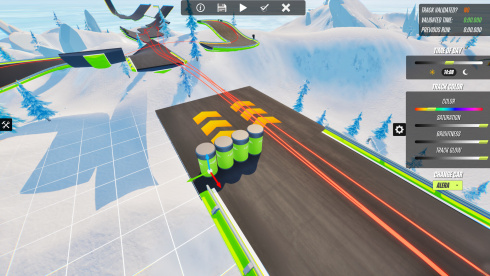 Apex Rush — аркадный автосимулятор, физическая модель которого демонстративно отвергает скучный реализм в пользу кинематографичных трюков и абсолютного контроля над техникой. Геймплейная формула проекта позволяет пилотам управлять болидом не только на асфальте, но и в воздухе, корректируя траекторию полета во время затяжных прыжков. Трассы здесь представляют собой сложные пространственные головоломки с выраженным вертикальным геймплеем, требующие от водителя мгновенной реакции и умения ориентироваться в трехмерном пространстве. Визуальная составляющая выполнена в узнаваемой эстетике low-poly, где угловатые модели и яркое окружение создают запоминающийся ретро-стиль без излишней детализации.