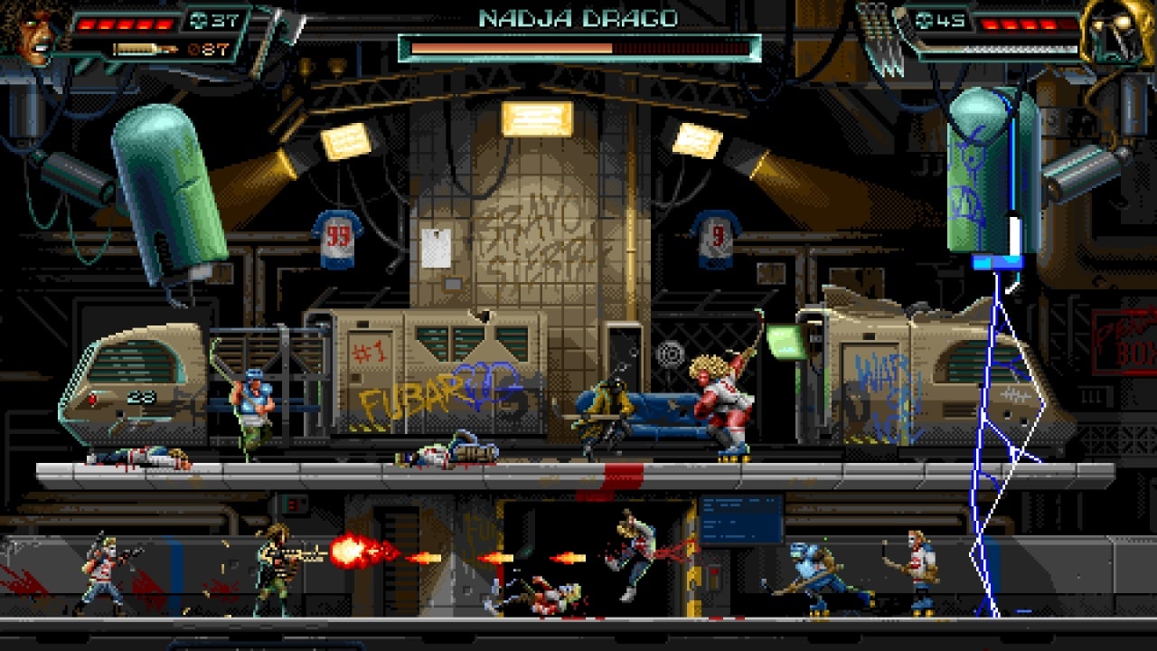 Охота за головами мафиозных авторитетов в HUNTDOWN стала главным занятием в жизни героя. Шутер создан по канонам криминальных кинолент 80-х годов прошлого века и выполнен в эстетике киберпанка. Сам процесс подан в форме экшена с элементами повествования. В стрелялке есть кооператив, где игрок обладает способностью оживлять напарника.