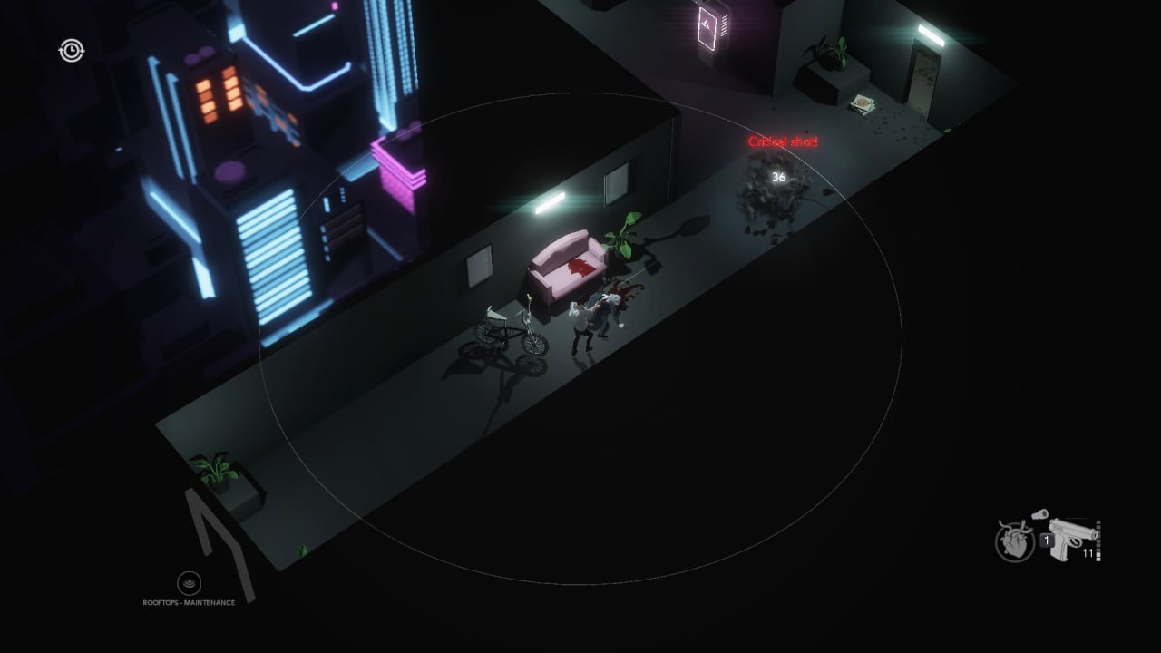 Протагонист исследует жилой комплекс со школой, кинотеатром, торговым центром, бизнес-центром, парковкой и техническими помещениями. Для продвижения по сюжету, геймеру предстоит искать предметы и ключи от заблокированных дверей, которые существуют между уровнями. В процессе нужно собирать пищевые продукты, необходимые для утоления голода подопечного. Найденные на локации вакцины и шприцы позволяют обнулять таймер прогресса болезни. Сражаться с противниками можно при помощи огнестрельного оружия, патроны к которому расположены на уровнях, а также с использованием ножа. Периодически можно спрятаться или убежать от врага.