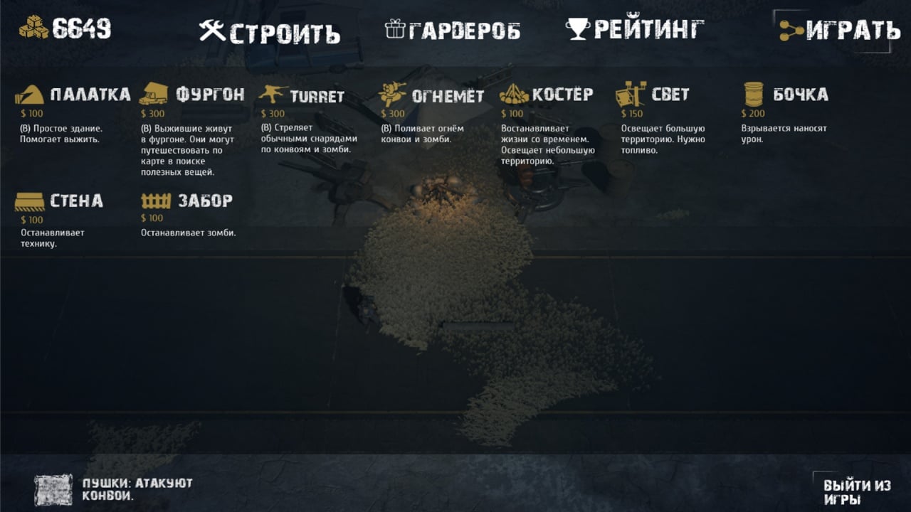 Можно собрать полный комплект уникальной брони, части которой раскиданы по всей карте. Отбиваясь от зомби, одной из главных целей будет сбор золота. На собранные деньги можно купить полезные ресурсы. Они поспособсвуют обустройству базы и защитят от нашествия орды живых мертвецов. Чем лучше ваша крепость, тем больше шансов выжить во враждебном мире гнетущего и мрачного будущего.