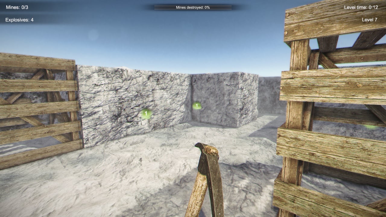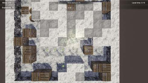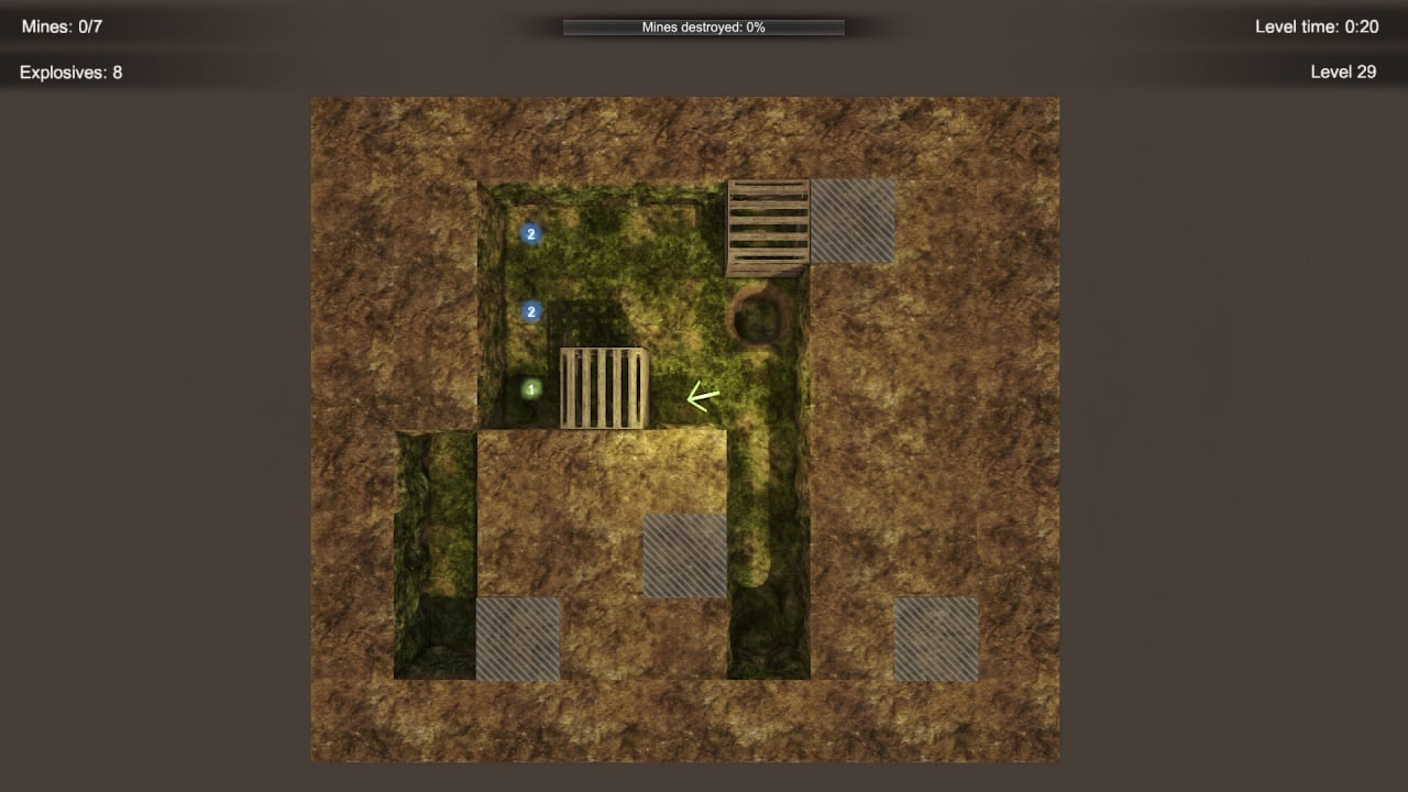 При убирании блока часто появляются облака с цифрами. Изображенные на них числа дают подсказку, сколько мин спрятано в 8 направлениях. Если неправильно вычислить подозрительный квадрат, то герой может подорваться, и тогда придется переигрывать. У продукта минималистичный интерфейс. Нам показывают сумму оставшихся мин, запас бомб, процент ликвидированных опасных мест, длительность забега и номер уровня.