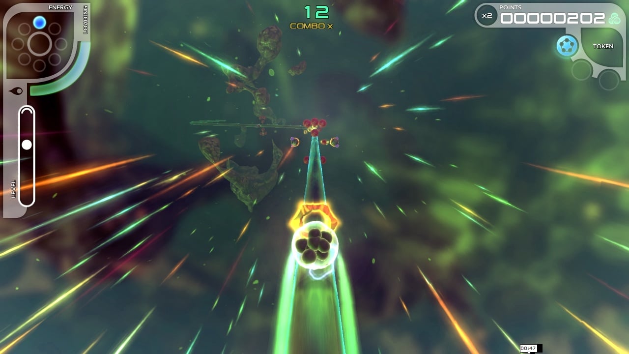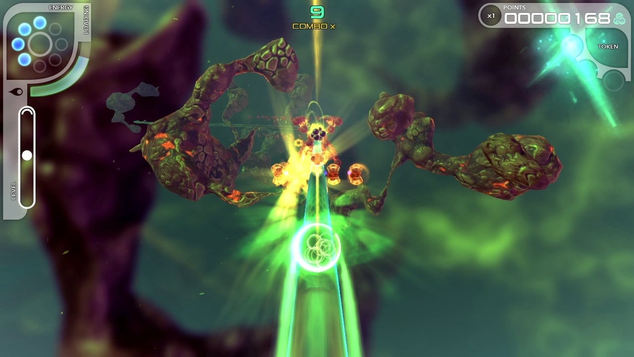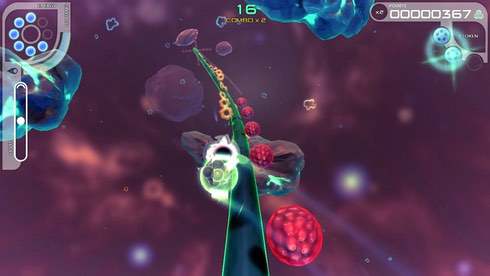 Аркадная кампания рассказывает историю маленького, шарообразного атома по имени Ферми. Он путешествует по субатомному миру, используя для этого тонкие, круглые соединения, похожие на кабели. По ним можно передвигаться в любую сторону и совершать полные обороты. Камера постоянно двигается вперёд и заставляет протагониста перемещаться автоматически, без вмешательства геймера, которому необходимо вовремя перепрыгивать препятствия и уворачиваться от них для успешного завершения этапа. Чем ближе к финальной зоне, тем больше становиться сложность. Это выражается в замысловатости преград и повышении темпа передвижения.