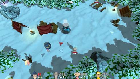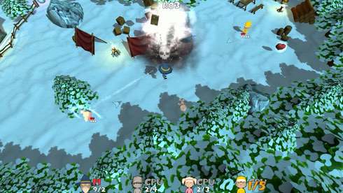 Схватки происходят на маленьких аренах. Каждый участник обладает пятью очками здоровья и таким же числом белых шариков. Когда амуниция заканчивается, необходимо перезаряжаться. Можно регулировать силу броска. Периодически на снегу появляются полезные предметы. Щит позволяет блокировать вражеские снаряды. Сердечко восстанавливает HP. Динамит, бомба и ракета сразу уничтожают противников, если тех заденет взрывной волной. С одного компьютера разрешают соревноваться вчетвером. Возможность игры по сети разработчики не завезли.