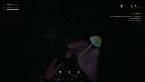 Игра обладает гигантской коллекцией грибов, состоящей из 100 видов, среди которых есть как съедобные варианты, так и те, что отравят при попытке их употребить в пищу. Растут они на большой территории, полностью открытой для исследований игроком. Более подробную информацию о них можно читать во встроенной энциклопедии. Путешествуя с целью выполнения полученных заданий, геймер натыкается на разнообразные виды грибов и получает за это специальную валюту, за которую приобретаются улучшения для хижины, где проживает протагонист, а также, новое снаряжение для походов. Реализована смена дня и ночи, присутствуют разные погодные условия.